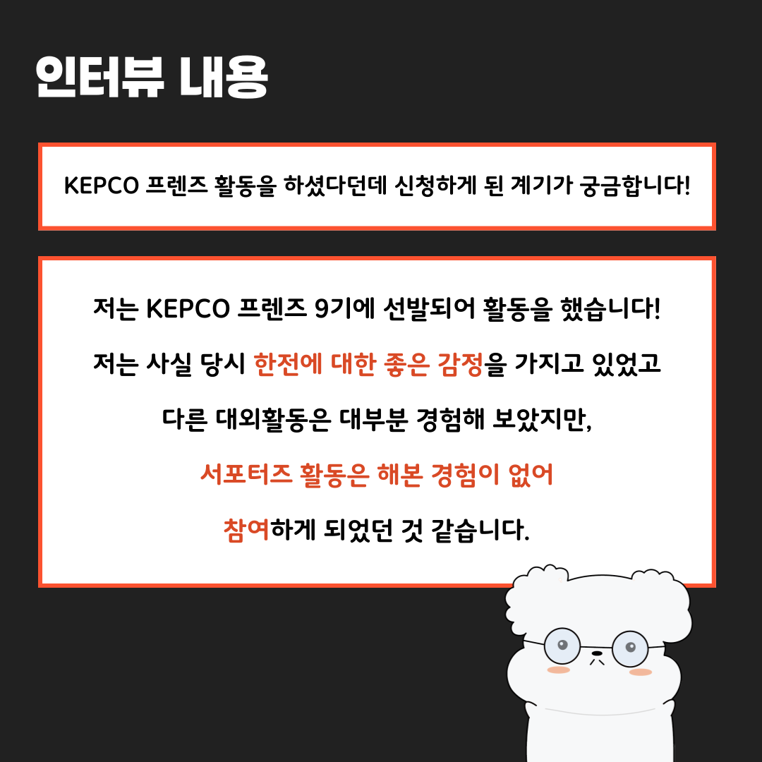 KEPCO 프렌즈 9기에 선발되어 활동하신 참가자분의 이야기를 들어봤습니다.