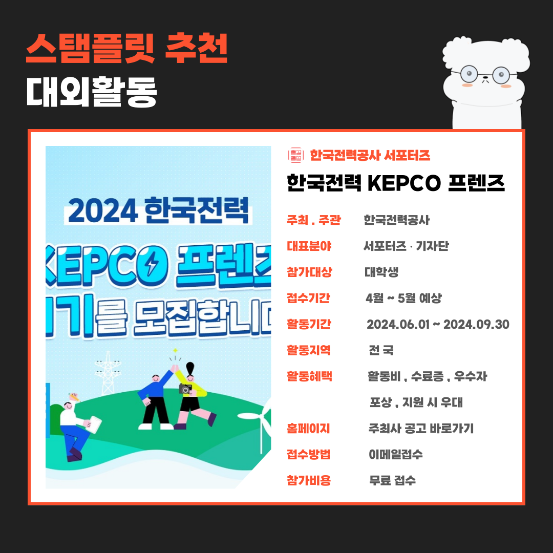 1️⃣ 한국전력 KEPCO 프렌즈 서포터즈 🔋